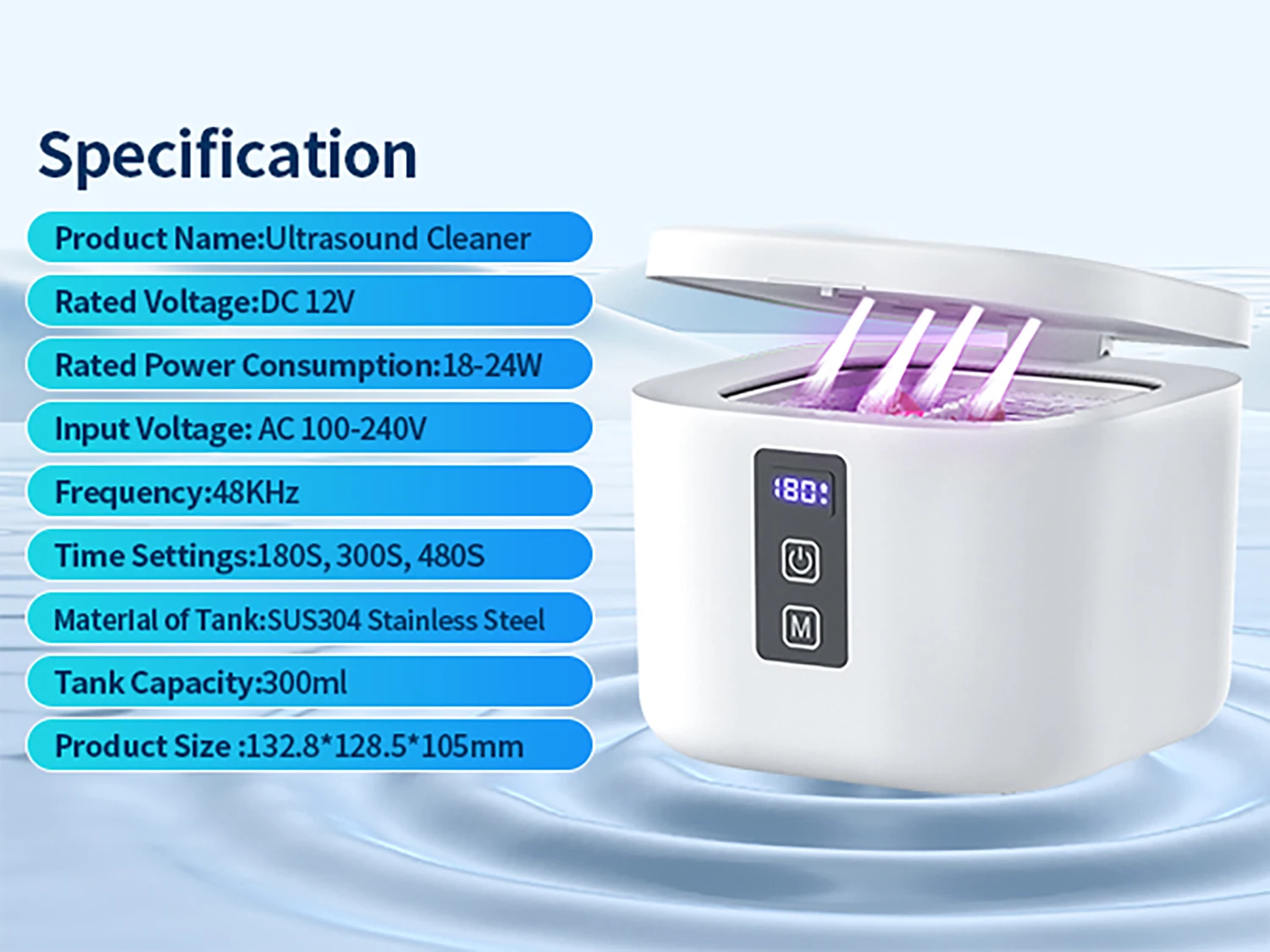 【Stylish Design】This ultrasonic cleaner can be put into your luggage without taking up too much space. Whether you are at home or away, this device can ensure that the original items accompany you, thus enhancing your travel experience.